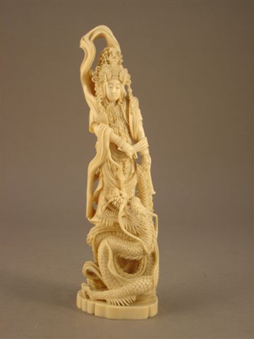 STATUETTE de Kannon sur le dragon. Japon. Signé Kunigetsu. Haut....
