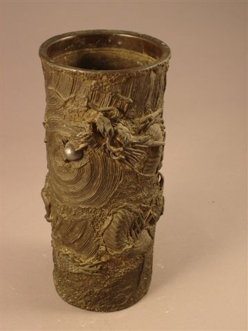 VASE rouleau en bronze à patine brune à décor de dragons.
