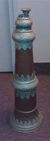 TROMPETTE en cuivre et métal argenté à décoré ciselé de fleurs et de rinceaux.