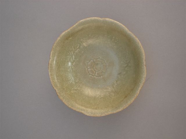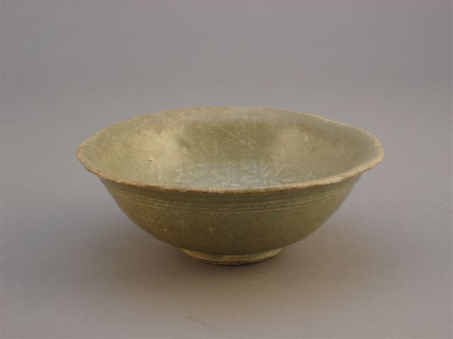 BOL en grès émaillé céladon à décor moulé sous la couverte de fleurs.