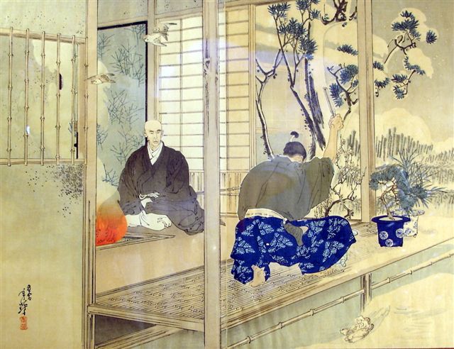OBAN YOKO-E représentant deux personnages dans un paysage de neige.