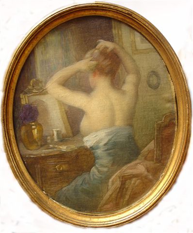 Antony TRONCET (1879-1939). La toilette. Huile sur toile marouflée sur...