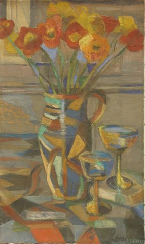 Nature morte au vase et aux verres.