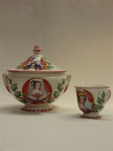 LITRON, ou tasse à chocolat (?), à décor polychrome de petit feu, orné d'un portrait en médaillon d'une femme au chapeau : Madame Bernard ou peint par Dupré.