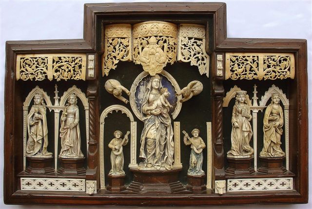 Provenance : ce retable fait partie de l'importante collection d'ivoires de Mademoiselle Charlotte Schmitt, descendante de l'industriel en fers et métaux Schmitt - léguée le 2 mai 1960 - aux Musées de la Cour d'Or à Metz.