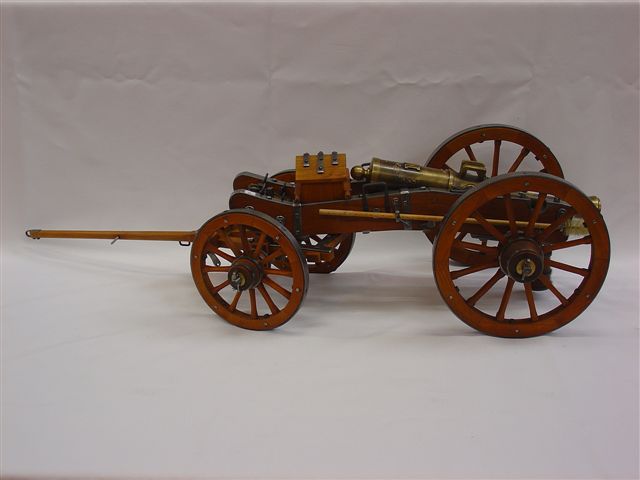 MAQUETTE D'UNE PIÈCE D'ARTILLERIE GRIBEAUVAL PREMIER EMPIRE AVEC SON AVANT-TRAIN.