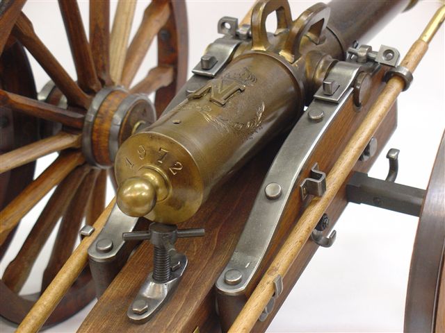 MAQUETTE D'UNE PIÈCE D'ARTILLERIE VALÉE SECOND EMPIRE, MODÈLE 1850, AVEC SON AVANT-TRAIN.