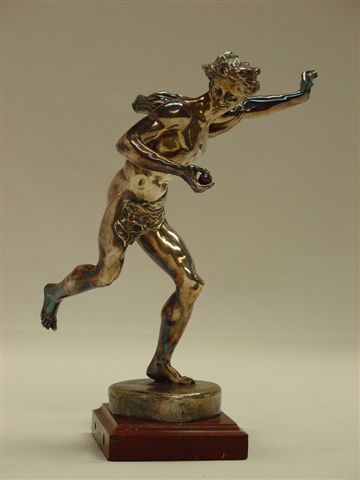 Le coureur. Bronze argenté sur socle en marbre rouge. Haut. 25 cm.