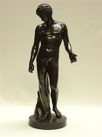 Éphèbe près d'un tronc d'arbre. Bronze à patine brune. Inscriptions...