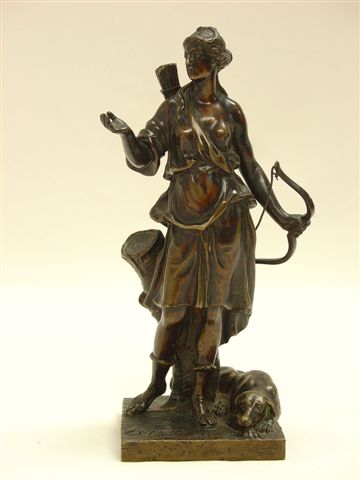 "Diane chasseresse". Bronze à patine médaille. Haut. 23 cm.