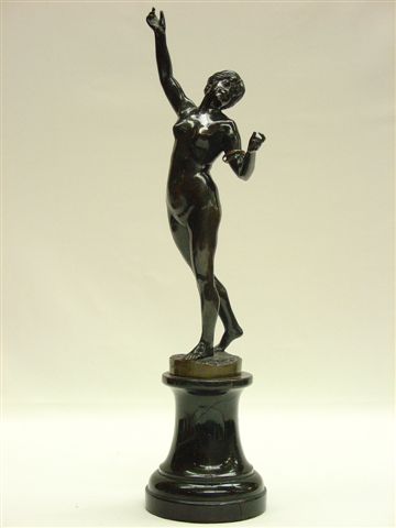 "Jeunesse". Bronze à patine noire. Signé "Moreau Paris". Piédestal en marbre noir. Haut. 43 cm.