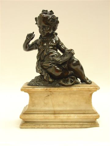 L'Astrologie. Bronze à patine brune. Socle en albâtre. Haut. 31, Long. 20 cm.