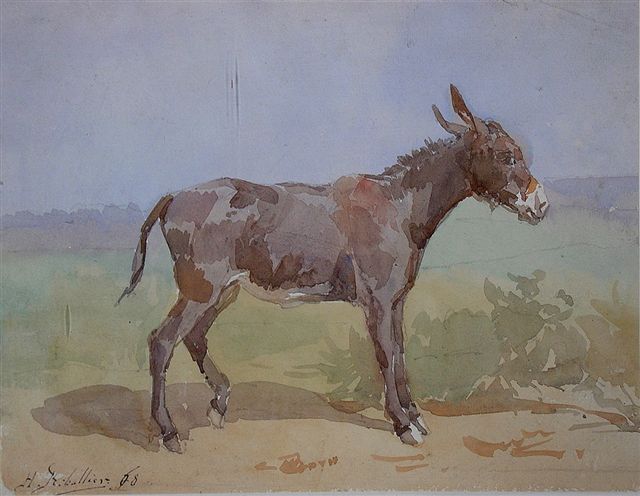 RIBALLIER-CHOUPPE Henri.Un âne. Aquarelle. Signée et datée 1868 en bas...
