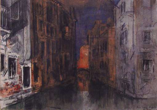 Venise, Rio San Angelo. Pastel et fusain. Signé en bas à droite. 23,5 x 33,5 cm.