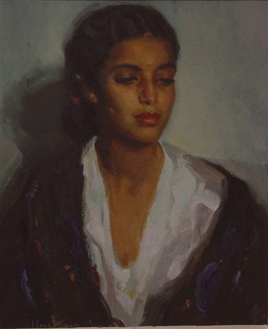Espanola. Huile sur toile. Signée en bas à gauche située Sevilla et datée : 38. 55 x 46 cm.