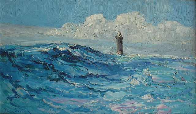 "Courant au sud de Menhir ". Huile sur toile. Signée en bas à gauche.