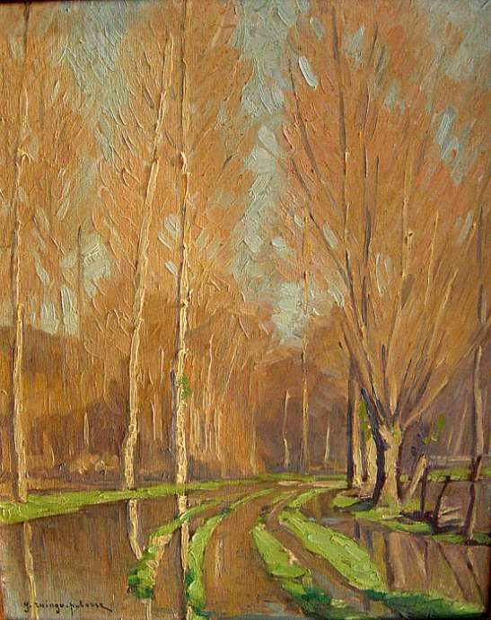 Inondation (Vallée de l'Epte) Eure. Huile sur panneau, signée en bas à gauche.