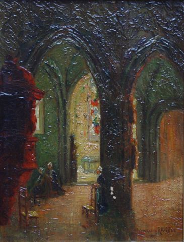 Paysannes en prière. Sur sa toile d'origine. Signé en bas à droite.