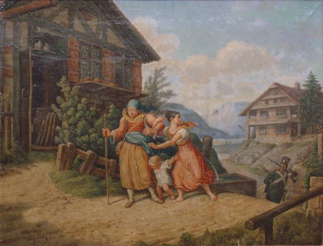 Jeune femme conduisant l'aveugle. Sur sa toile d'origine. Signé en bas à gauche "Weny".