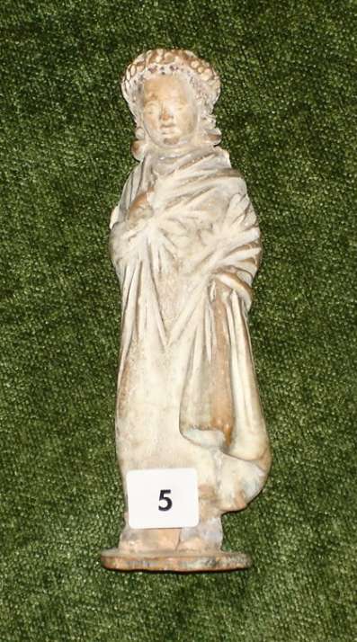 TANAGRA, femme drapée, terre cuite ancienne. Haut. 14 cm. (accdts)