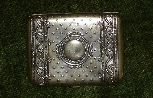 ÉTUI à CIGARETTES de poche en métal argenté repoussé à...