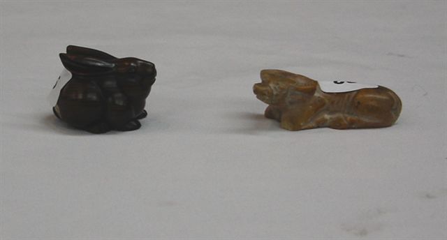 BUFFLE couché en pierre dure. Travail extrême-oriental. Long. 6 cm