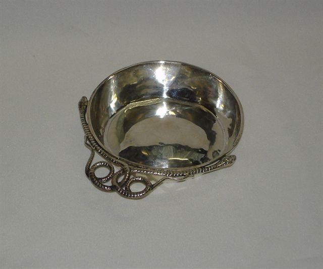 TASTE-VIN en argent uni. Anse aux deux serpents entrelacés. Maître-orfèvre A-D NESME, reçu maître vers 1730 à Lyon. XVIIIème . Poids : 115 g