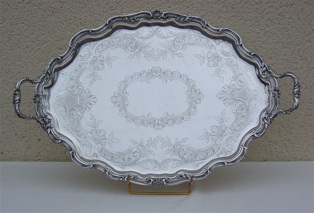 PLATEAU de SERVICE en argent à contours au riche décor de coquilles, acanthes et feuillages. Poinçon Minerve, "Maison ODIOT Paris". Long. 66,5 cm. Poids : 2545 g.