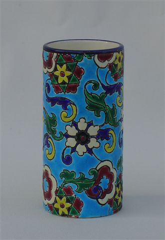 VASE rouleau. Décor plein d'étoiles et de rosaces feuillagées d'inspiration Napoléon III sur fond bleu (n°3051).