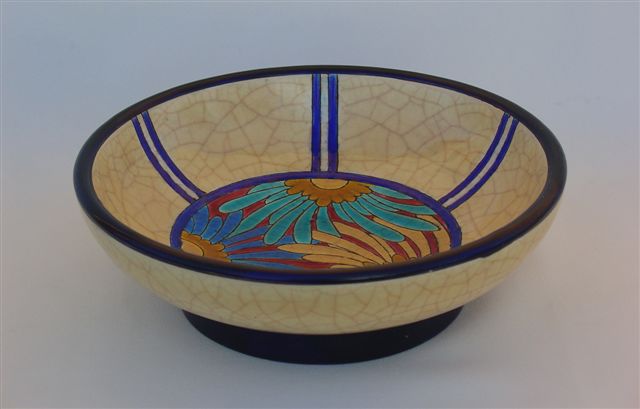 COUPE. Décor central aux trois fleurs sur fond crème craquelé (D 5414 manuscrit).