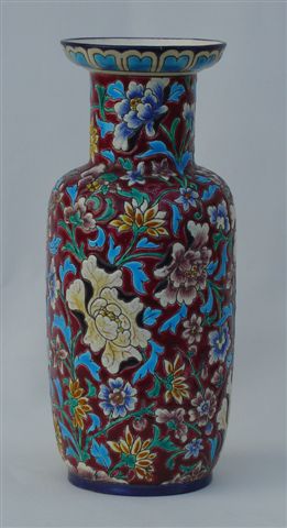VASE balustre. Décor chrysanthémo-paéonien sur fond pourpre d'or (D 792 manuscrit). Marque en creux 1173.