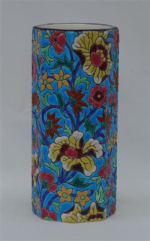 VASE hexagonal. Décor chrysanthémo-paéonien sur fond bleu (D 792 manuscrit), forme 180.