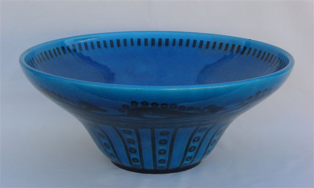 COUPE haute. Décor zoomorphe et géométrique à glaçure ombrante bleue.