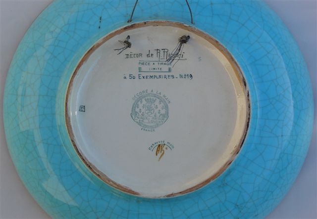 Deux PLATS formant pendants signé R. RIZZI (active à Longwy de 1944 à 1949). Décor aux cavaliers d'Asie dans les flots. Edition limitée : n°19 et 43 sur 50 exemplaires (chaque).