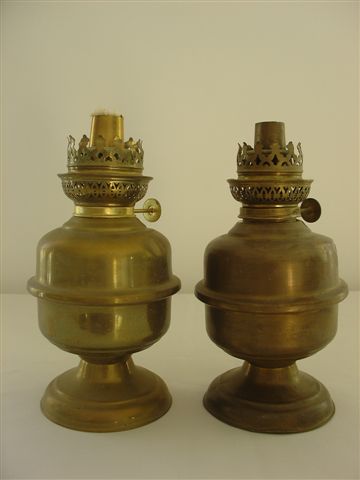 Paire de lampes à essence en laiton sur piédouche. Haut....