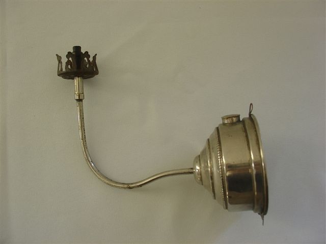 Lampe à pétrole d'applique en tôle. Long. 16 cm.