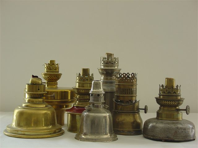 Lot de 7 lampes à pétrole, modèles divers. Haut. 20 cm.
