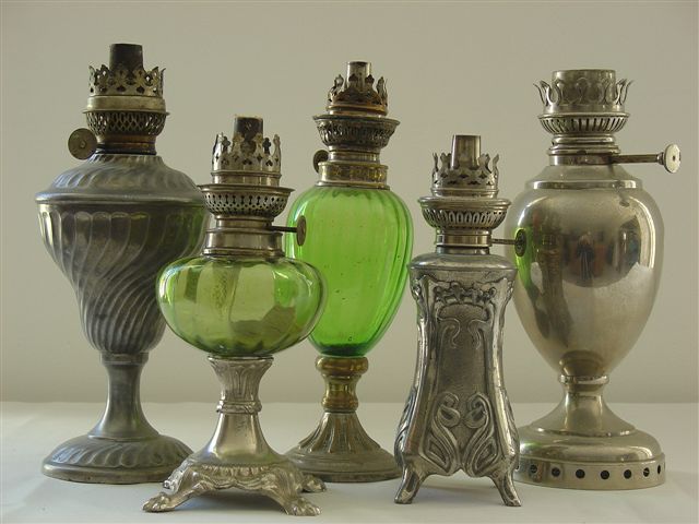 Lot de 5 lampes à pétrole, modèles divers. Haut. 26 cm.