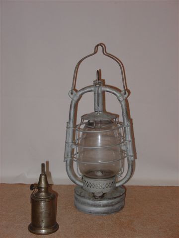 LAMPE tempête (Haut. 40 cm.) et LAMPE pigeon (Haut. 18 cm, manque).