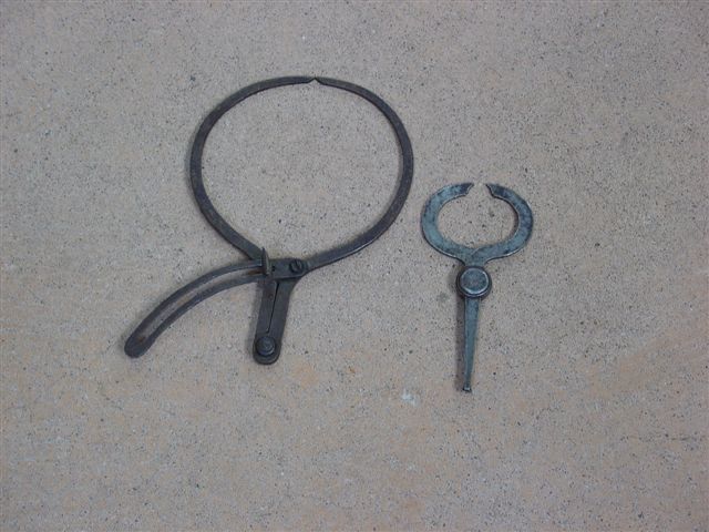 Deux COMPAS d'épaisseur en fer forgé, l'un avec papillon de serrage.(Haut. 23 et 16,5 cm.)