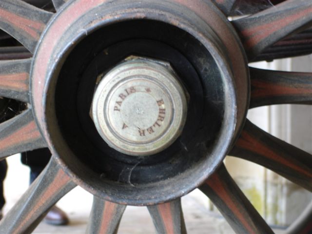 Train à flèche arquée en bois ferré. Quatre ressorts en C à crics avec soupentes en cuir et quatre ressorts à jambe de force. Essieux cintrés. Roues à bandages en fer (diamètre avant 94 cm, arrière 129 cm). Avant-train à rond, sellette et lisoir droits, volée fixe sur armons. Arrière-train à planche de laquais sur traverses maintenue par des arcs-boutants courbés en fer. Timon.