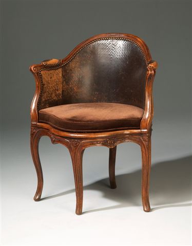 Beau FAUTEUIL de BUREAU en hêtre mouluré et sculpté de fleurettes.