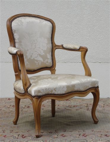 FAUTEUIL cabriolet en bois naturel mouluré. Dossier violoné et pieds cambrés.