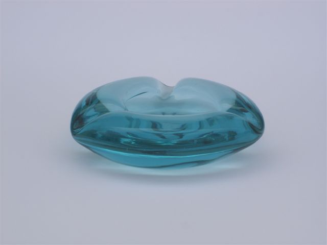 André THURET (1898-?). Cendrier triangulaire en verre épais bleu turquoise. Signature à la pointe. Larg. 18 cm.