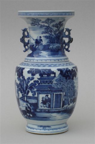 VASE balustre en porcelaine à décor en bleu de personnages...