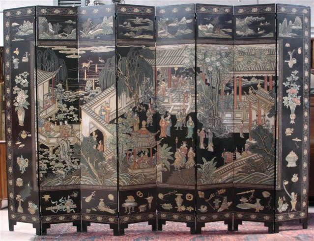 PARAVENT double face en laque de Coromandel à huit feuilles....