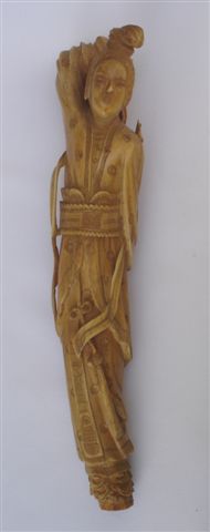 STATUETTE de jeune femme debout en ivoire à patine jaune.