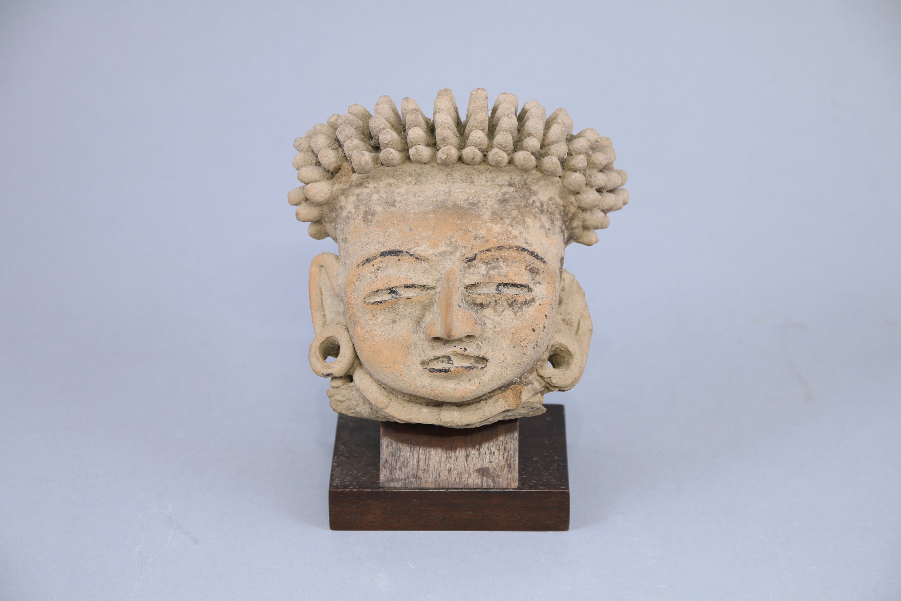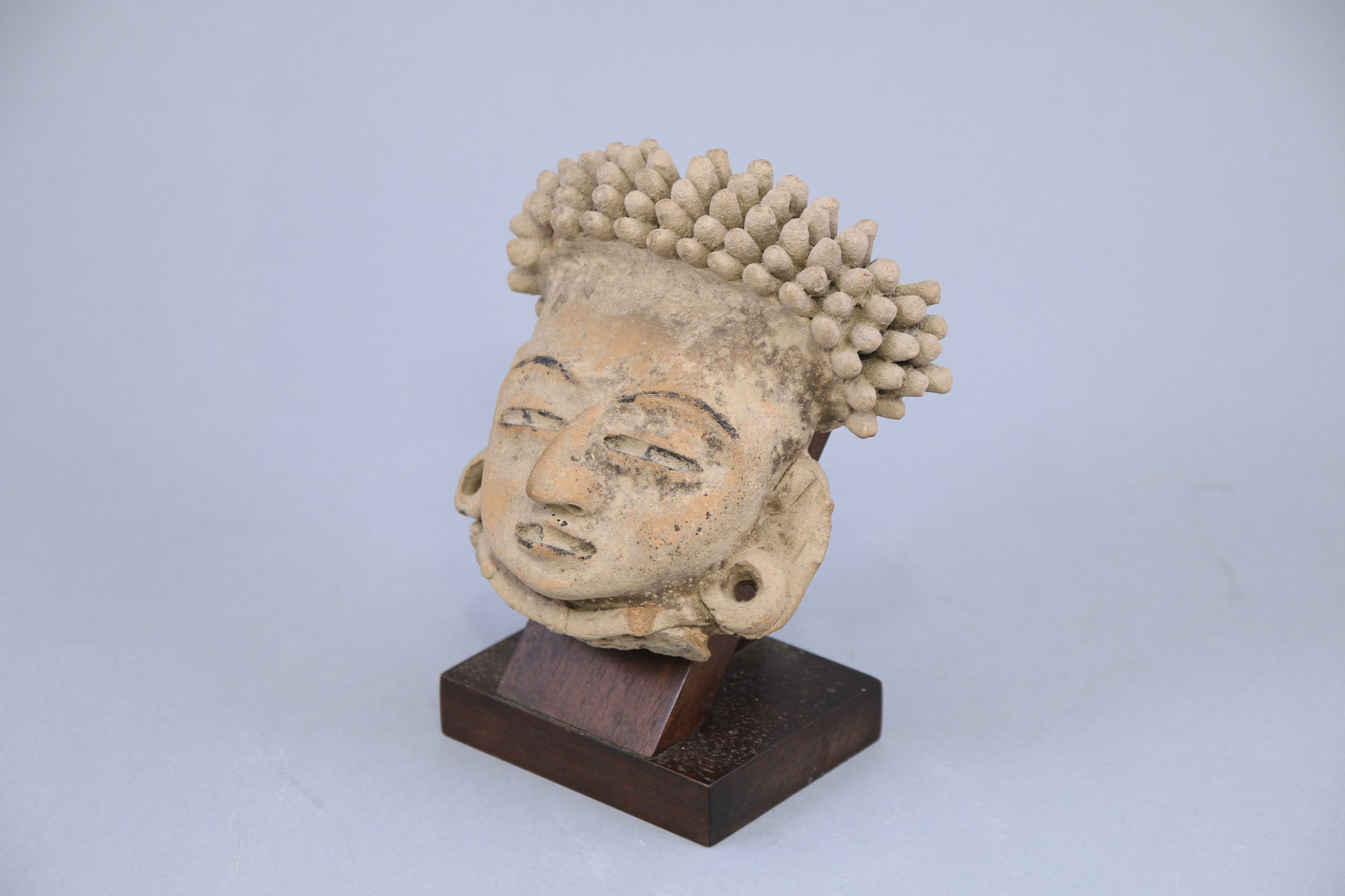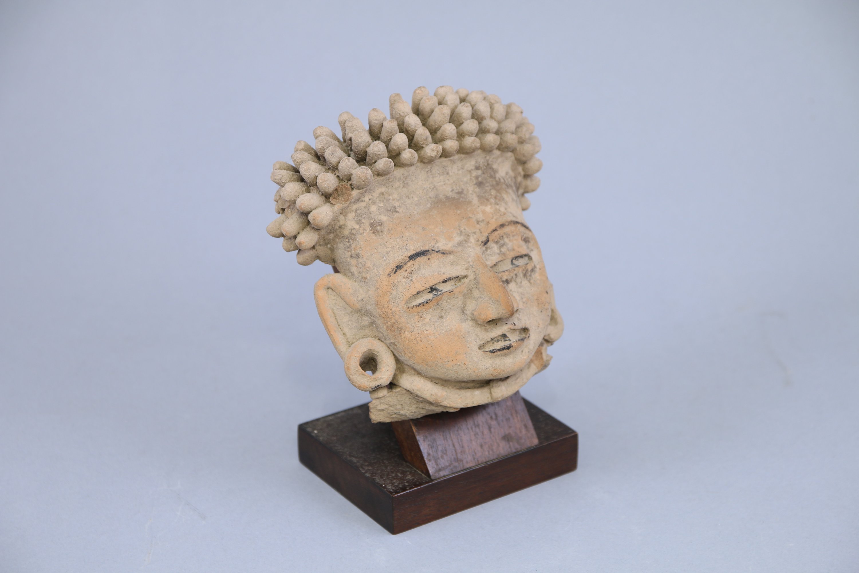 aux oreilles percées et réhaussées de coaltar sur les yeux, la bouche et l’arrière de la coiffe. Ancienne étiquette portant le n°106 collée au dos.