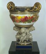 Fig. 1 Manufacture de Minton d’après un modèle de Carrier-Belleuse, vase en porcelaine et bronze doré, piètement en parian, Exposition Universelle de 1862 de Londres, acquis par le musée en 1862, H. 95.5 cm x L. 76 cm, P. 35.5 cm base, Diam : 59 cm, V&A Museum, n°inv. 8111-1863.