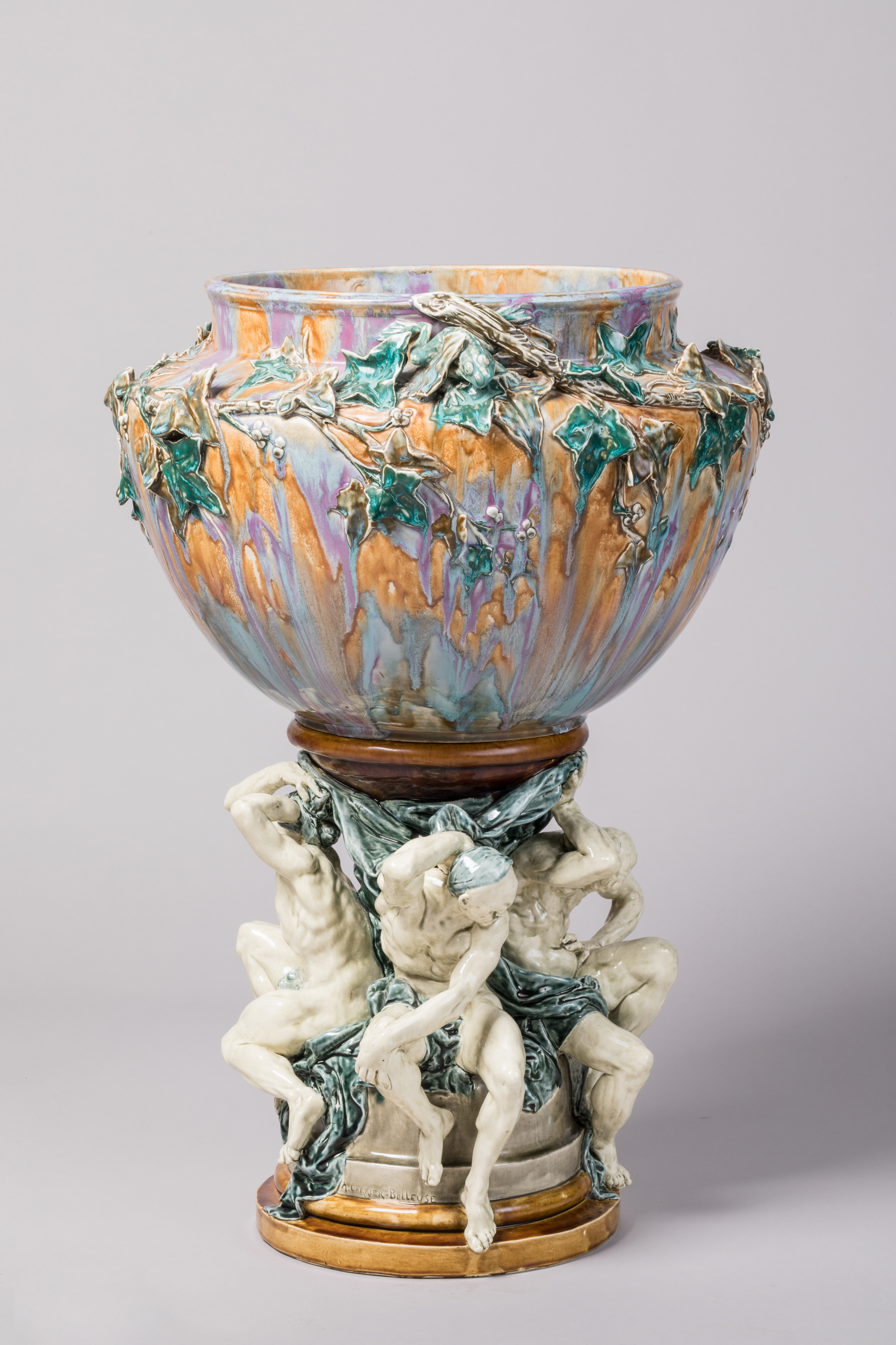 - Auguste Rodin (1840-1917) et Albert-Ernest Carrier-Belleuse (1824-1887), pour la manufacture de Choisy-le-Roi, Jardinières des Titans, 1899, céramique émaillée, h. 71, diam. 50 cm. Adjugé : 155 000 €
